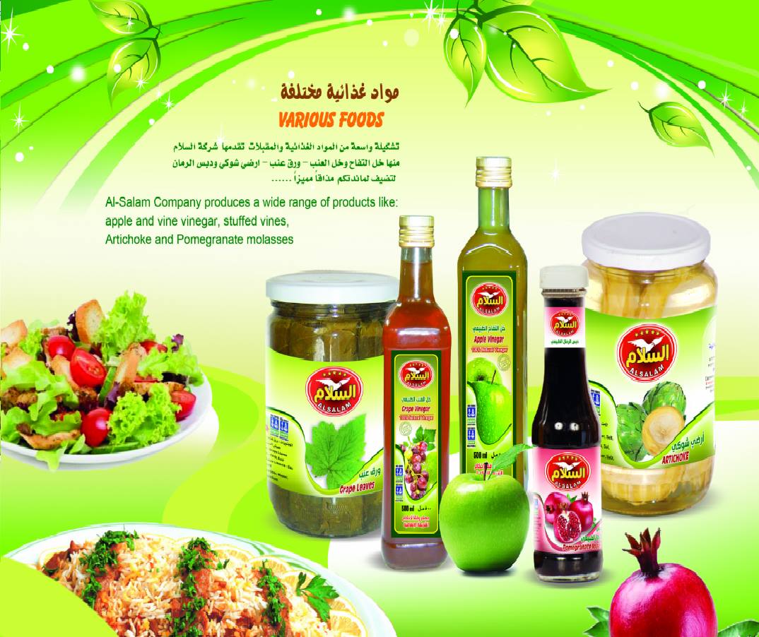 Al Salam Company for Food Products is not a newly created one. It was established in 1986. Since then, our company has been one of the Syrian Arab companies specialized in producing and distributing Food products of premium quality. As the company had made remarkable progress, it became one of the leading Food companies and one of the Syrian economy pillars, as well. Our success has always based on our high quality products and our commitment with the international specifications standards in the field of producing and distributing conserved foods and in competing the imported products and the constant keeping up with the most recent developments. A new branch of our company opened in Egypt, and another one in Lebanon so as to extend our business in the Arab and European markets and provide our consumers with our products at a large scale. Meanwhile, we seek to open new markets in all Arab and world capitals and cities. Our company has kept on introducing a prominent quality of different items; all kinds of conserves, apricot paste, all kinds of preserved canned food, tomato paste, pickles, olives and jam